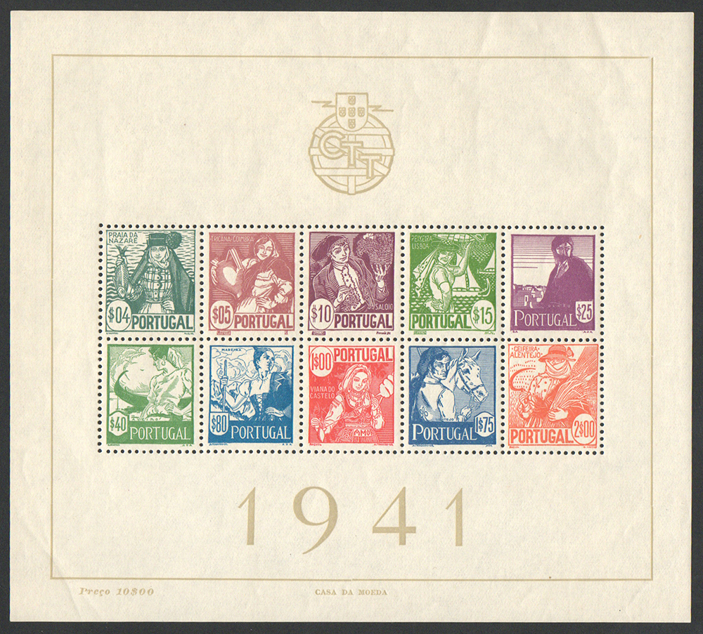 Portugal bloc du centenaire et bloc costumes régionaux, fraîcheur postale , infime froissure d’angle habituelle due à la distribution. Facture certificat comme pour tous nos timbres