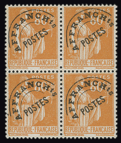 N°0075** – 80 centimes Paix bloc de 4 Excellent centrage TTB