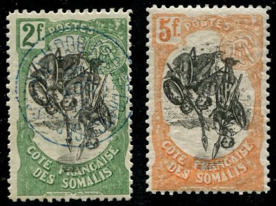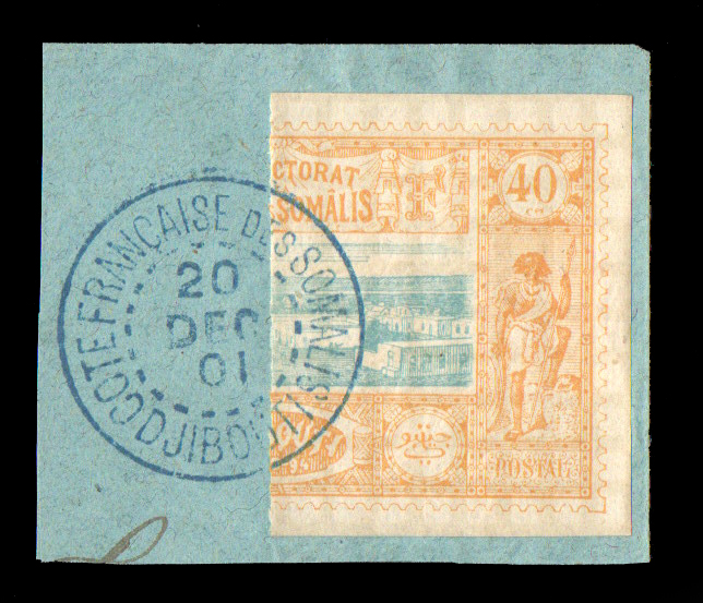 • N°0014a Cote des Somalis coupé sur fragment du 40 centimes TTB