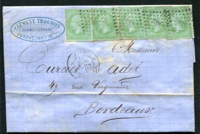 • N°0035 – 5 centimes vert sur bleu emission de sept 1871 sur lettre