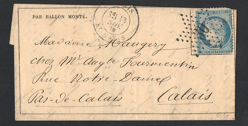 • – Le général Ulrich cad du 13 Nov pour Calais arrivée 26 Nov TTB