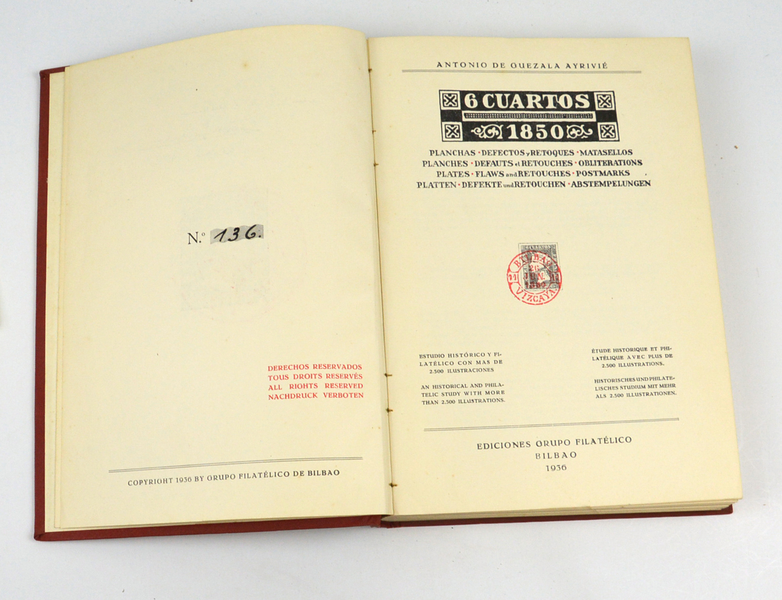 Espagne 1936/40 . Édition Bilbao Monographie 6 cuartos planches repères oblitérations, 25×18, 349 pages bel état