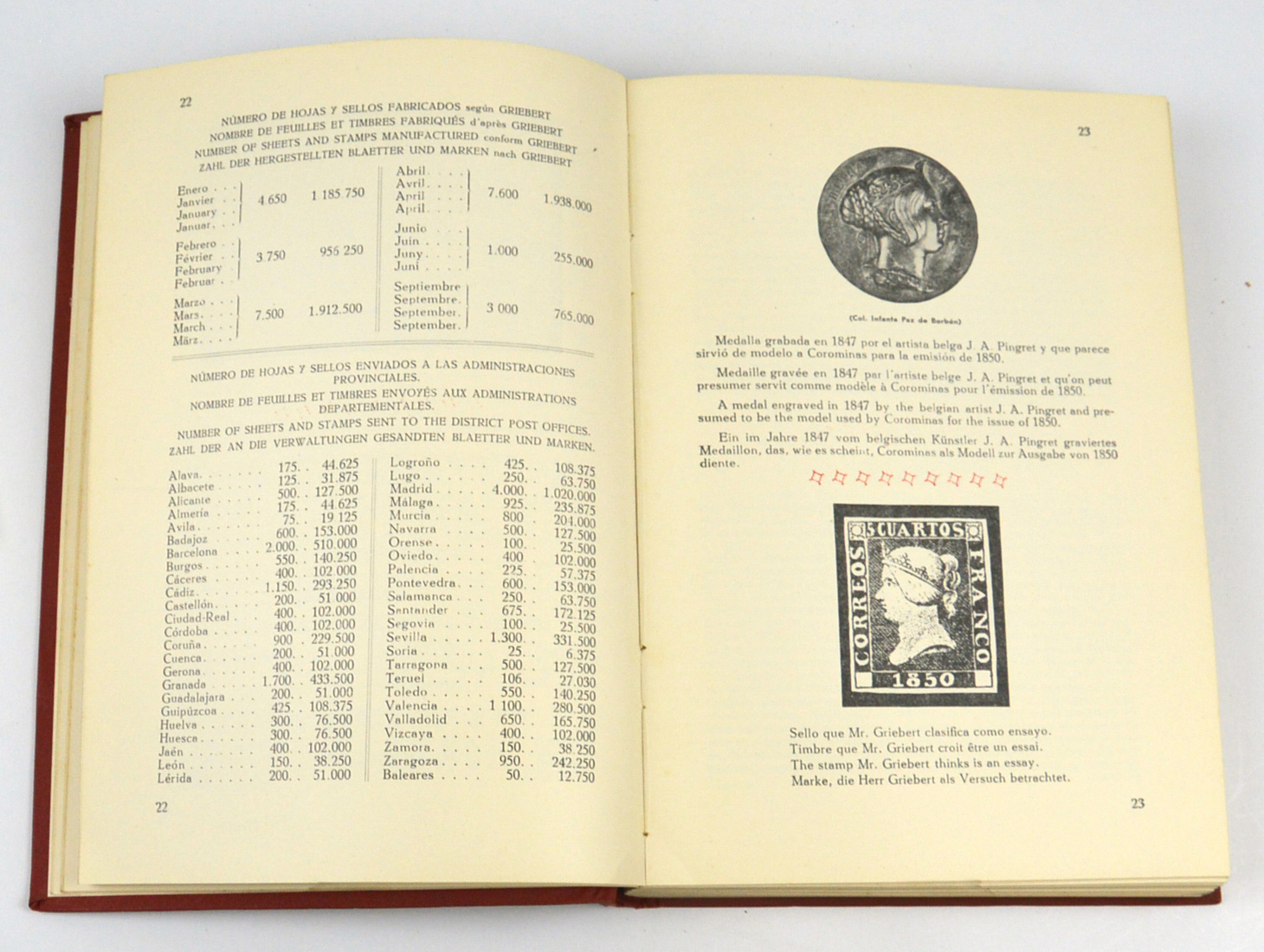 1936/40 – Espagne Monographie 6 cuartos planches repères oblitéraions