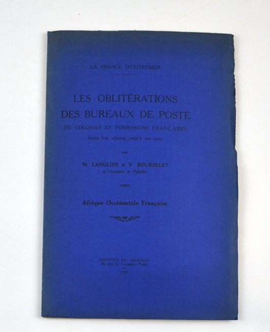 Étude Langlois/Bourselet oblitérations des bureaux XIX° et XX° colonies/AOF 1937 25X17 60 pages cartonné très bel état