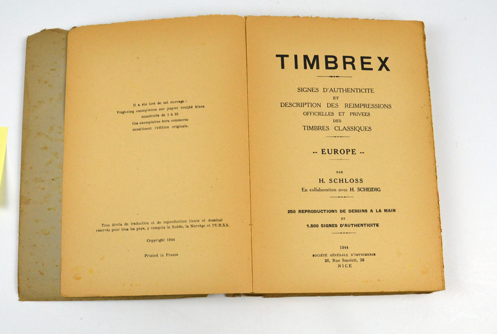 Timbrex 1944 Étude Schloss:Scheidig, tableau d’expertise avec repères, 25×17, 254 pages Rare , bel état