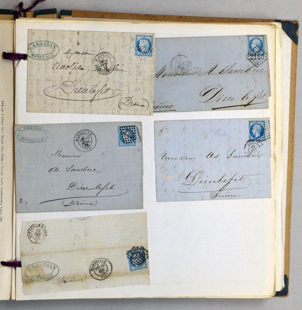 Belle archive de lettres principalement adressées à Dieulefit dans la Drôme. 77 bleus + quelques marques. Archive très bien conservée.