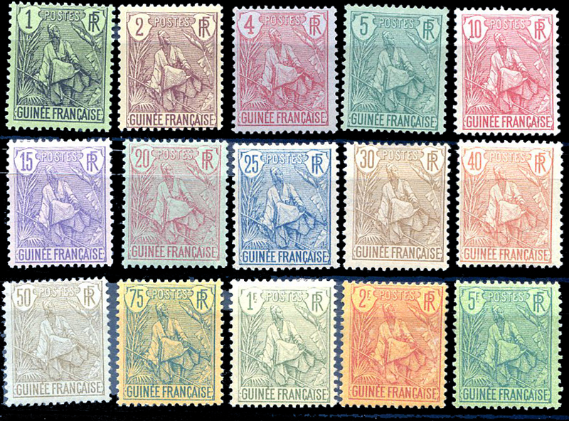 Guinée N° 18 à 32 avec charnière propre TTB Facture certificat comme tous les timbres du site