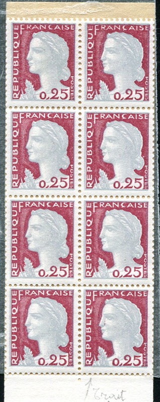 Carnet Decaris 62-4 8 timbres piquages à cheval rare ** TTB Facture certificat comme tous les timbres du site