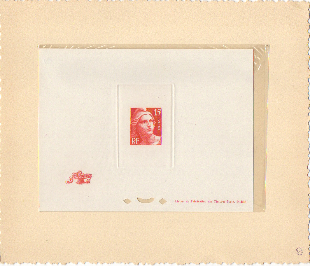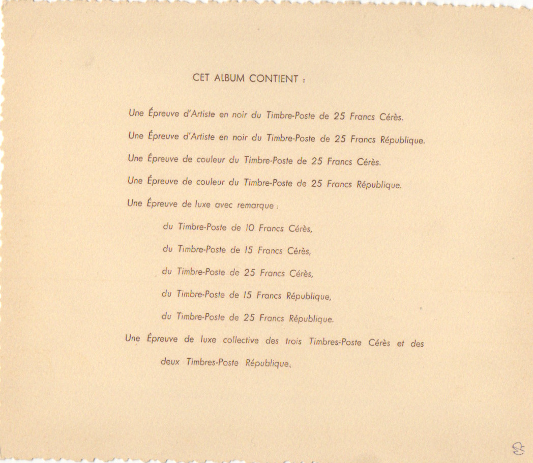Coffret de l’exposition de 1949 CITEX , tirage réservé aux collectionneurs exposants à l’administration postale et aux exposants. 5 épreuves avec remarques, 1 épreuve collective, 4 épreuves (2 en noir 2en couleur)dont 2 signées de Gandon. Ensemble rare d’une très belle qualité seules quelques infimes rousseurs sur la couverture, les épreuves sont superbes. Facture certificat comme pour tous nos timbres.